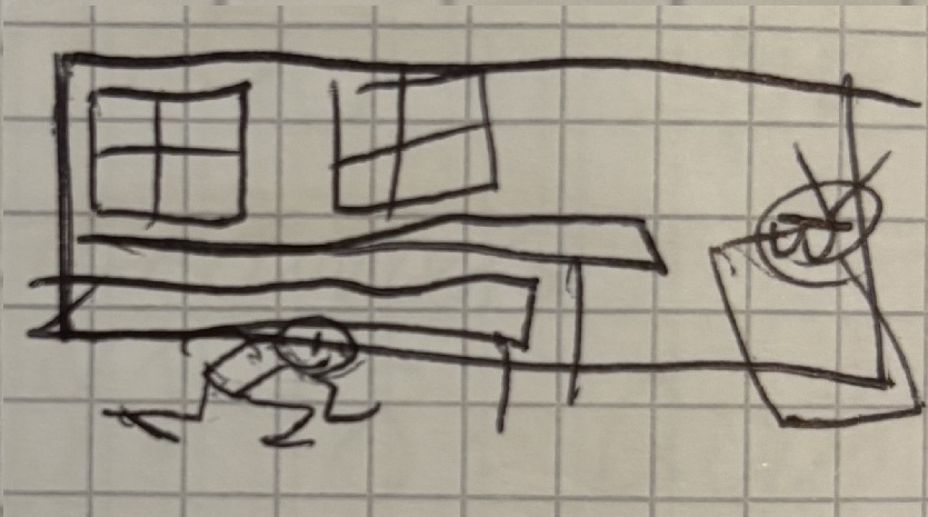 anyways with this image it's really just a sketch of the class with the whole "sneaking" gimmick still there from the beginning. a lot of people thought that the room had broken due to it being pitch black when you enter. now originally i actually had a solution to this issue yet i never implemented it. basically this room would have occured much later in the game so you could obtain another item, and due to being later in the game it would be thunderstorming. so you could find the combination easier by using the lightning in the background to see. i kind of wish i did this, actually.