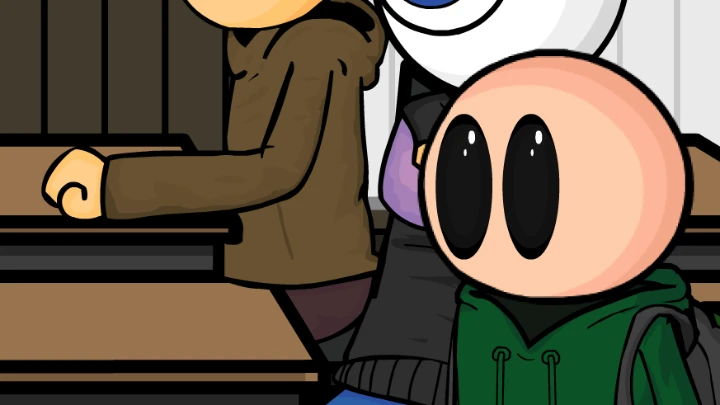 back in march of 2024, i joined a voice call with some good friends of mine. one of them (i honestly cannot remember who...) said that they were gonna start a studio that purely made flash games, with riddle university being the debut title. obviously, these plans fell through quickly, or the game wouldnt be on my account. the only thing from this group that is in the game is bombdude, the guy in the second classroom.